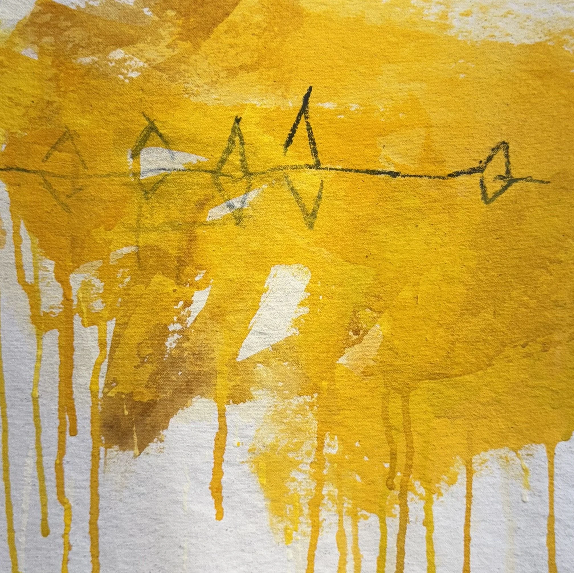 A moment of illumination suspended in motion — light as heartbeat, rising through the haze of gold. The graphite line pulses gently, bridging the visible and the unseen.