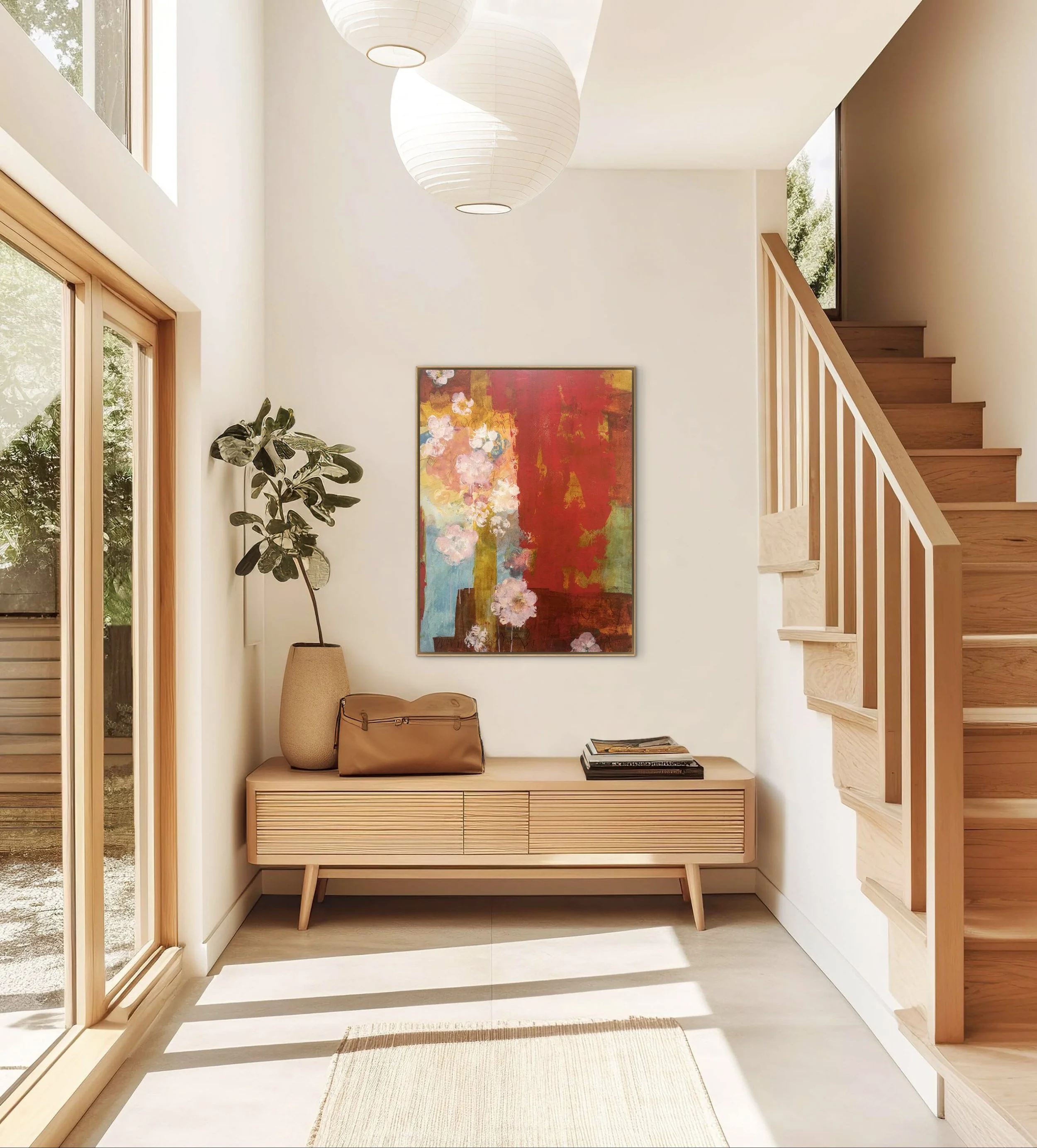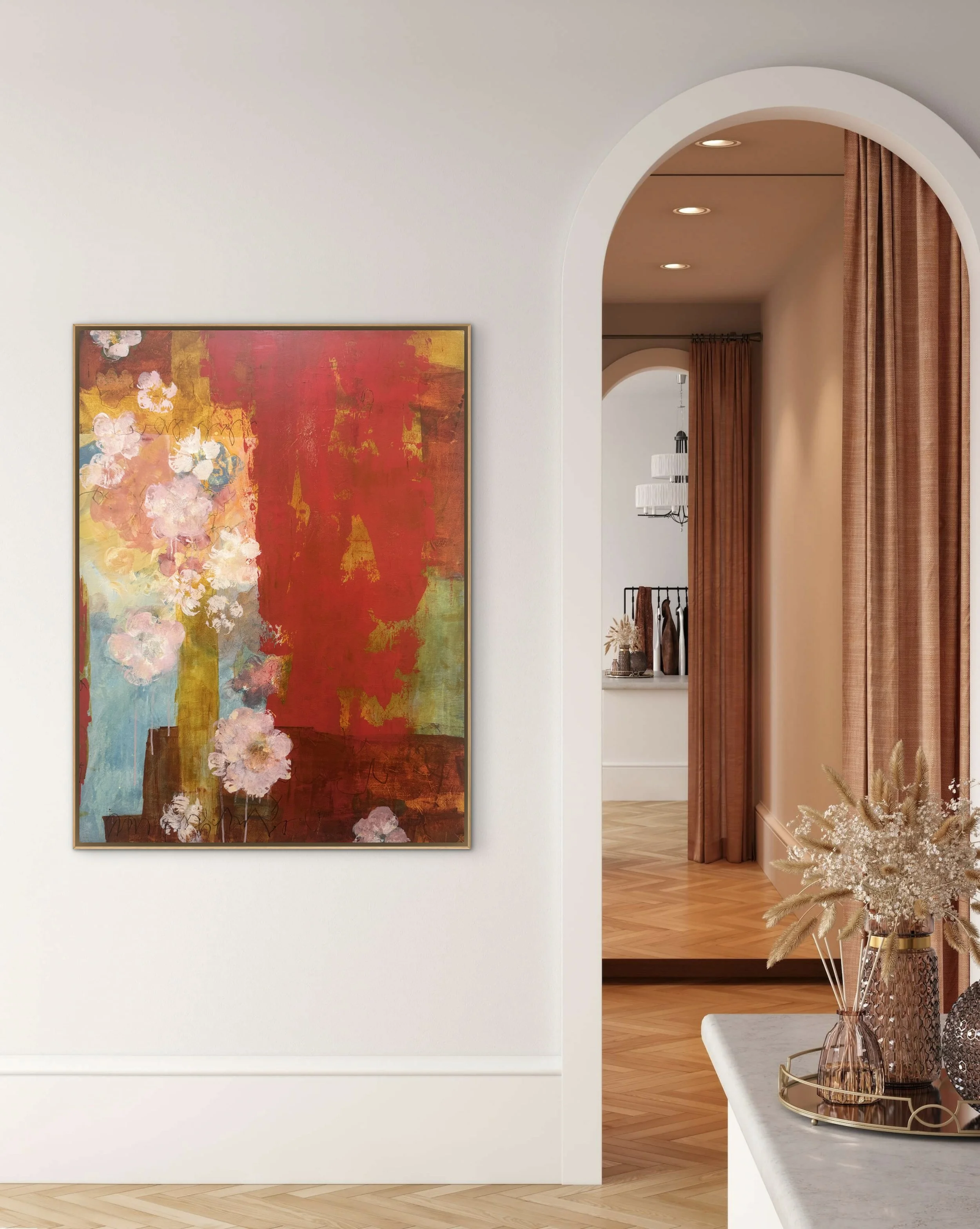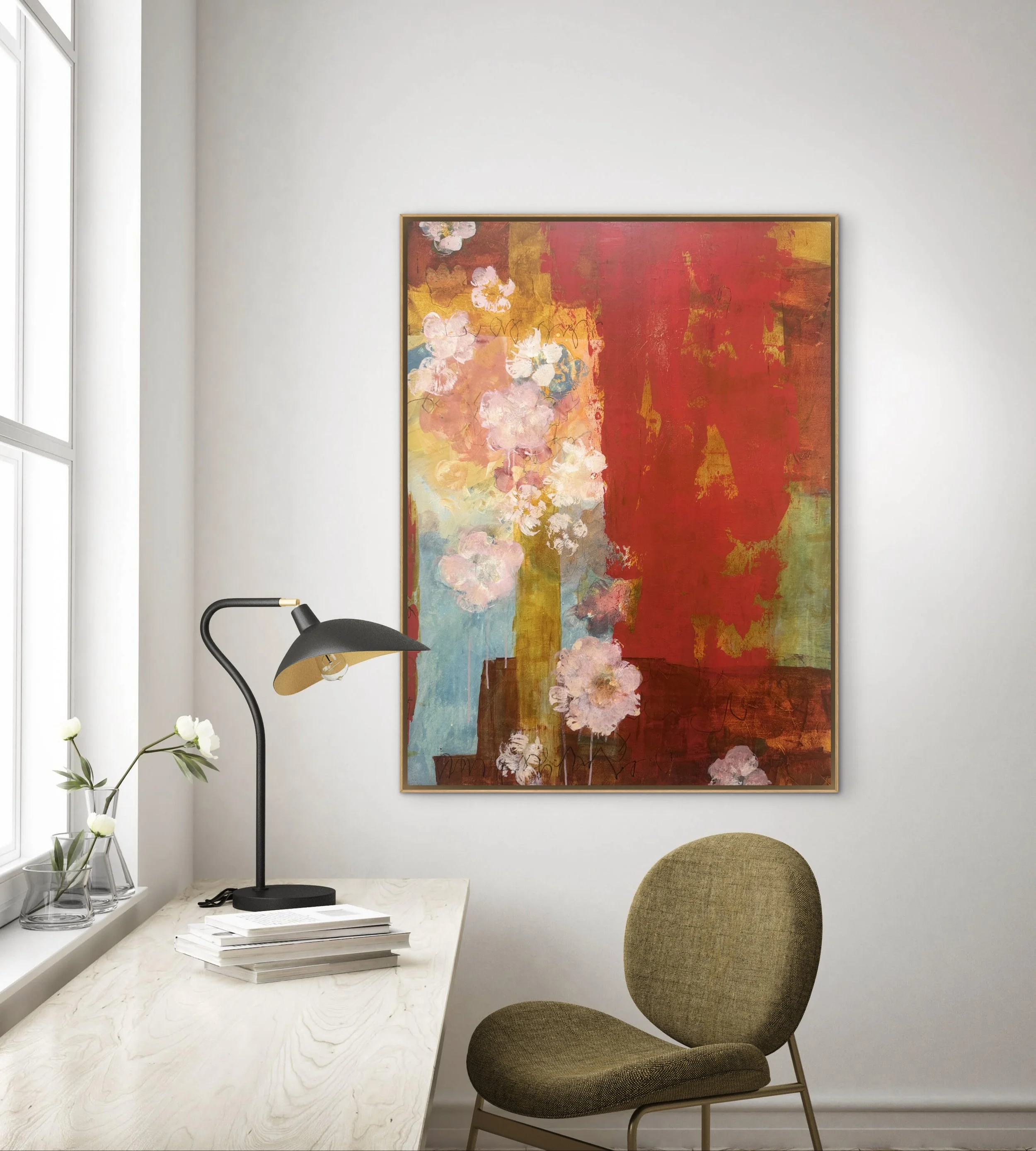 Flowers are not decorative, they are evidence. The red- not romantic but vital. The absence of a vessel - the point, Love cannot be held- only experienced. Provocative, un-yielding, bold.